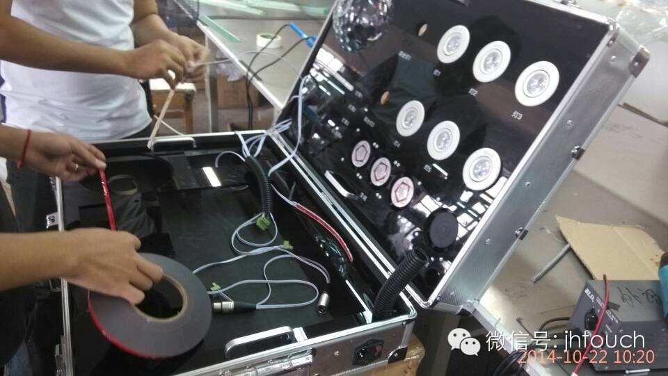 灯光测试说明:(演示时把演示箱左边靠近墙壁,演示效果更佳)